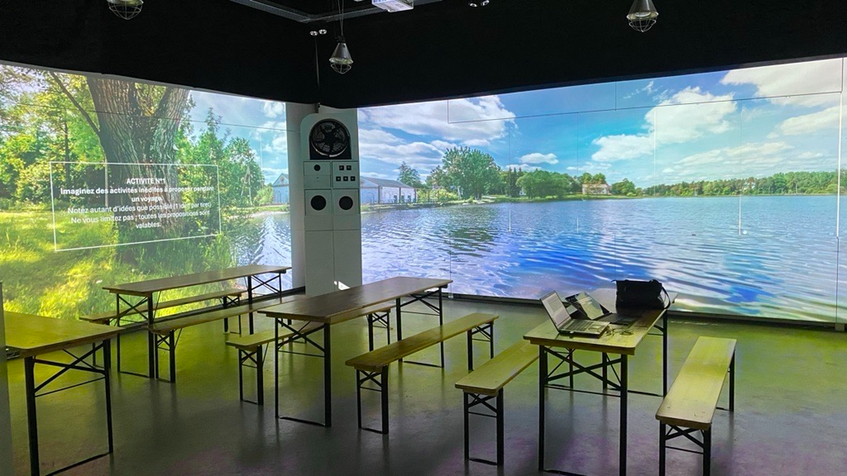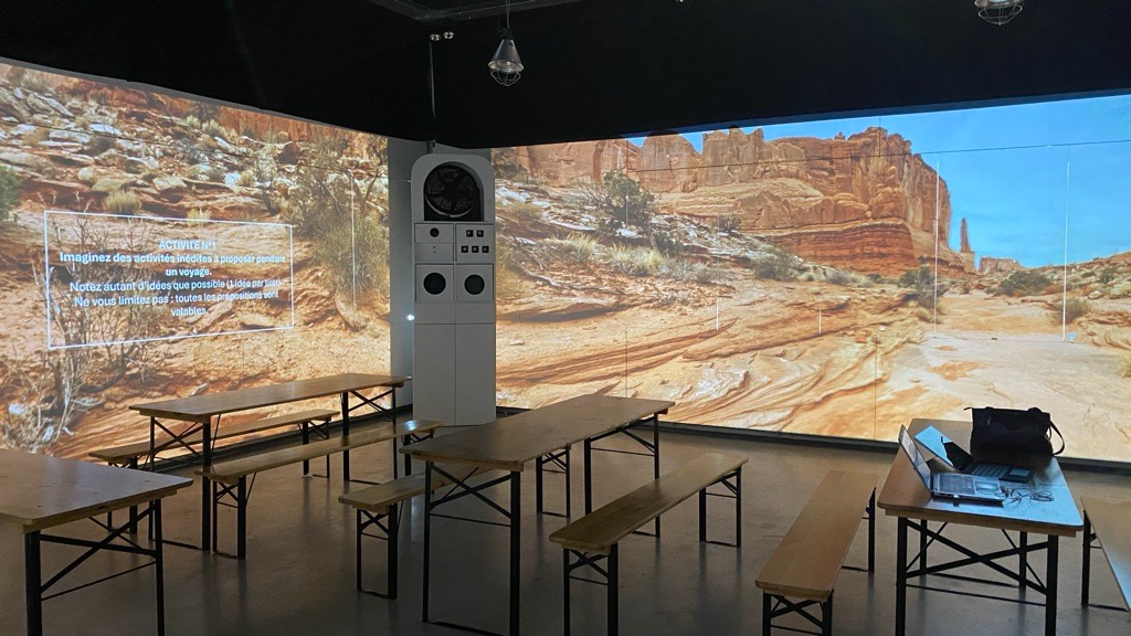 To design this protocol, we are using one of our largest immersive installations: the 80‑square‑meter room at the Lyfe Institute (Ecully), equipped with 360° screens and numerous sensory devices (sound, scent, mist, airflow, and temperature control). This work is being conducted by our PhD student Lou‑Anne Delaroque, under the supervision of François Abiven, CEO of Repères, as well as Guy Parmentier (creativity researcher) and Marielle Salvador (sensory marketing researcher).
